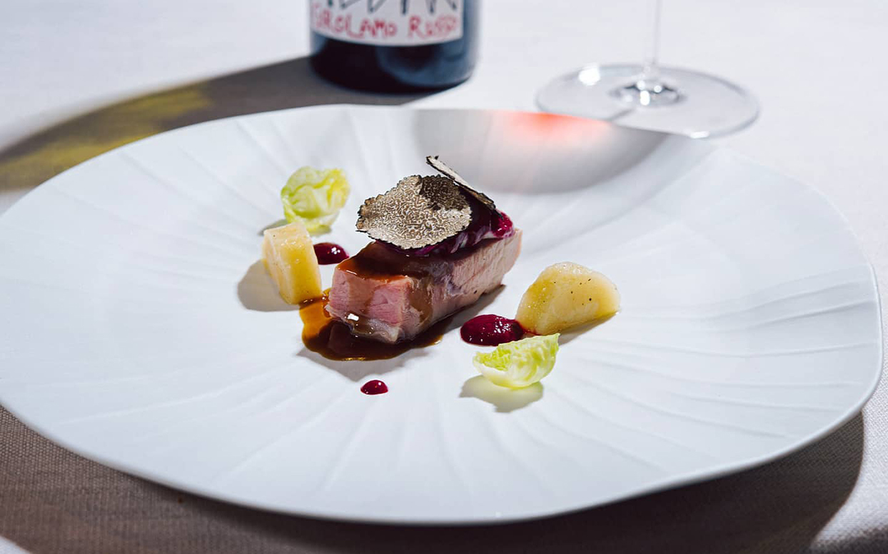 Emanuele and Michela Scarello are heirs to 130 years of history that began when their great-great-grandfather Umberto, formerly a king's guard, received a license to open a shop as a thank-you for his service to the crown. The bounty of sea and land provides the inspiration for Emanuele’s cooking, in dishes such as an infusion of potato peels in vegetable broth (Godia being home to some of the best potatoes in Italy) or gnocchi with butter and sage, and a sort of “vegetable marrow” made with salsify. His sister, Michela, deftly lords over the front of the house.