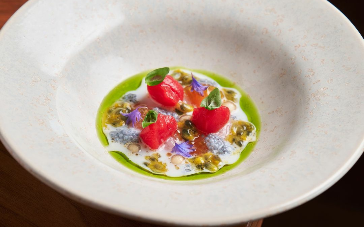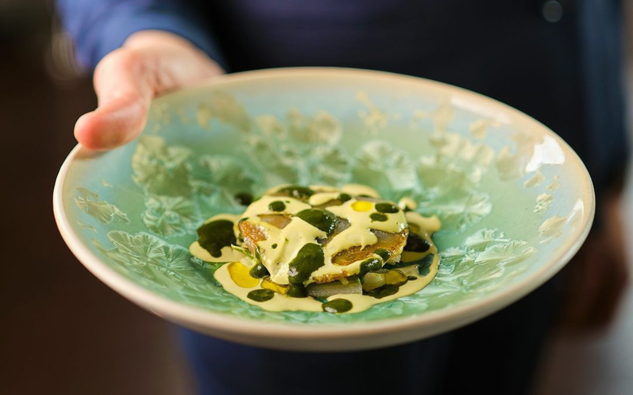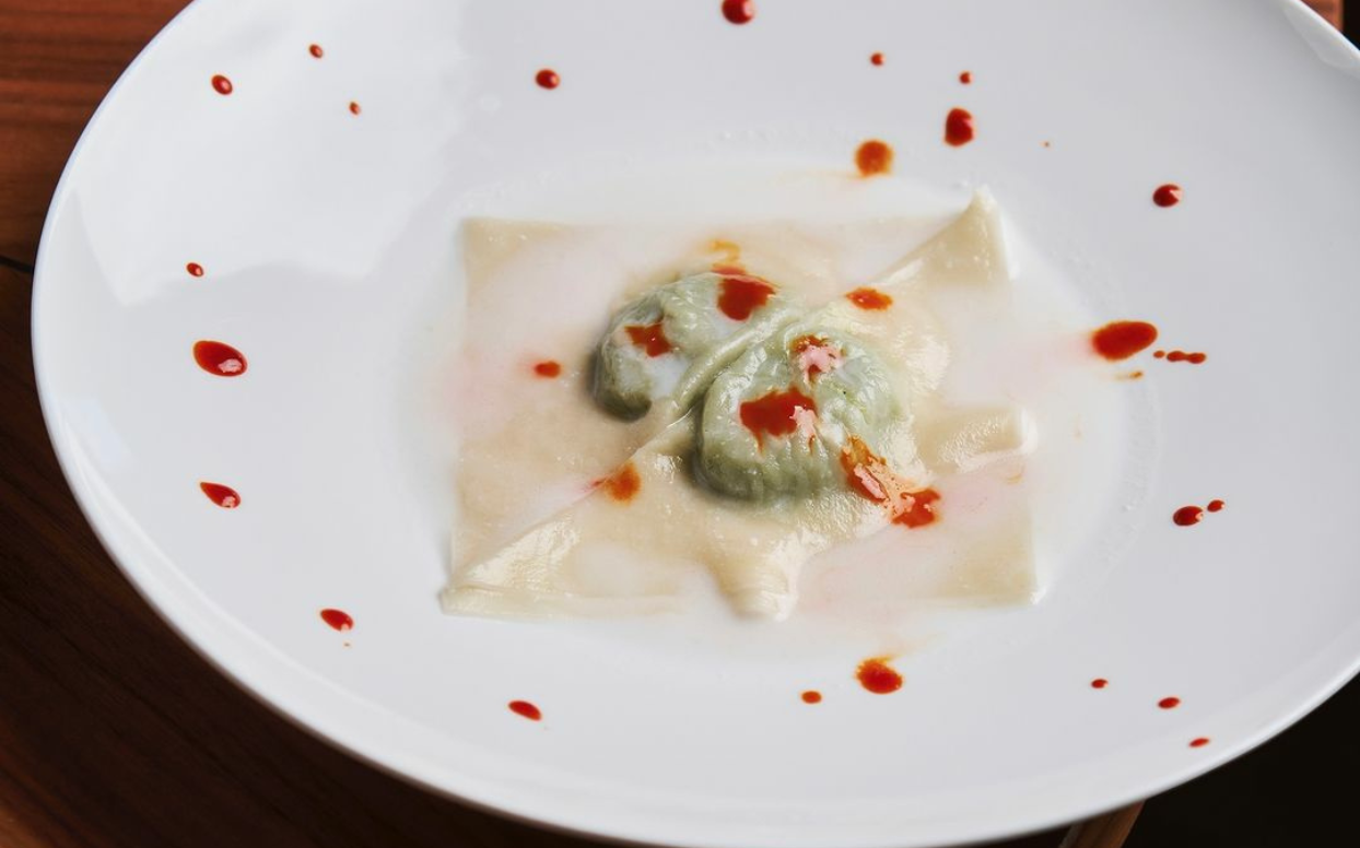 In 2020, chef Takeshi Iwai left the pastoral Ada e Augusto, located in the countryside outside of Milan, for this restaurant in the Torre Solaria, one the most recognizable landmarks of the new Milan. Despite the change, he didn’t surrender his deep connection to nature or his unique approach to filtering though an Italian lens the flavors of his native Japan – fermentation and cooking with charcoal or sumibiyaki. The approach is evident in dishes such as tsukemen spaghetti with chicken and octopus, beef tataki and licorice or pigeon yakitori.