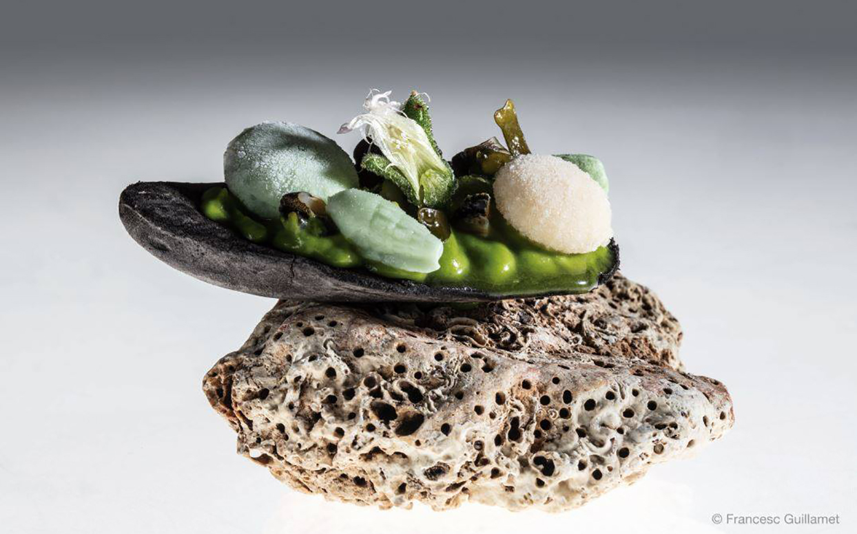 Yet another alumnus of the El Bulli kitchen, Chef Paco Pérez has abandoned Modernist technique and created a cuisine featuring the best of what the gardens and mountains of Catalunya have to offer. Still, many creative nuances are present, especially with ingredients that come from the sea. The tasting menu spans 15 courses and includes creations such as sea cucumber, marine egg and hen jus. There is a major focus on wine – hence the restaurant’s name – reflected in a cellar containing more than 700 references.