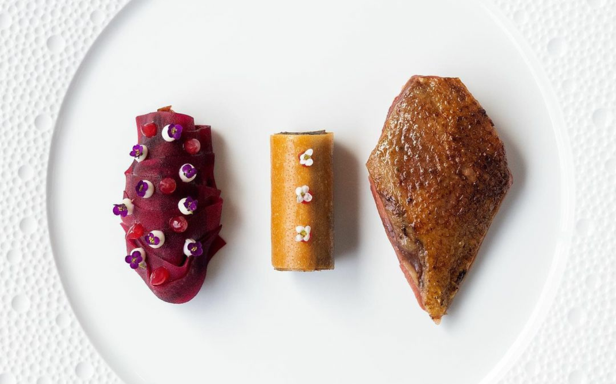 At Gordon Ramsay’s luxuriously carpeted modern French restaurant in Knightsbridge, the red wine is obviously very fine indeed. In the kitchen is Russell Bateman, who trained under Marcus Wareing and with Daniel Clifford at Midsummer House in Cambridge. His ingredients are excellently sourced and prepared in a manner that can be described as sedately decadent – pressed foie gras with Sauternes and smoked duck, Dexter beef with charcuterie sauce – with tasting menus available as well as a chef’s table experience.
